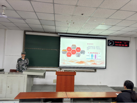 宣讲员刘琪为同学们介绍了应征入伍的基本条件、报名方式、优待政策等,并分享了军旅生活的点滴。他细致解析了报名流程的各个阶段以及注意事项,并以男兵为例,辅导大家如何进行网上兵役登记。